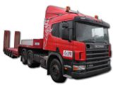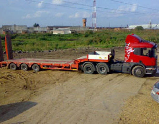 Низко рамная площадка (трал) на базе тягача Scania, для перевозки тяжелой спецтехники. Грузоподъемностью от 45 тонн.